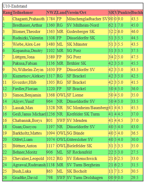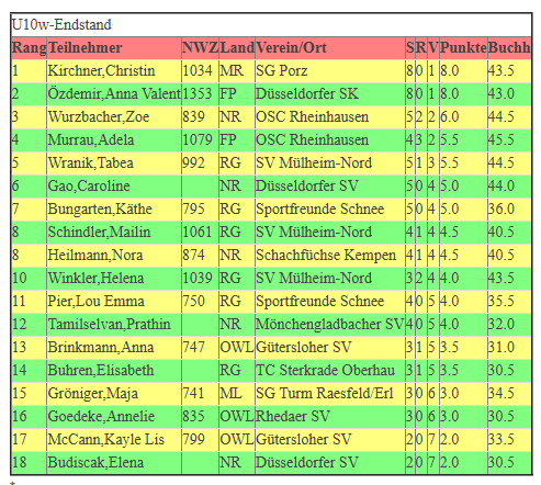 In der Altersklasse U10w gelang es Prathinya Tamilselvan bei ihrem ersten NRW-Turnier mit 4 aus 9 ein sehr gutes Ergebnis zu erzielen.